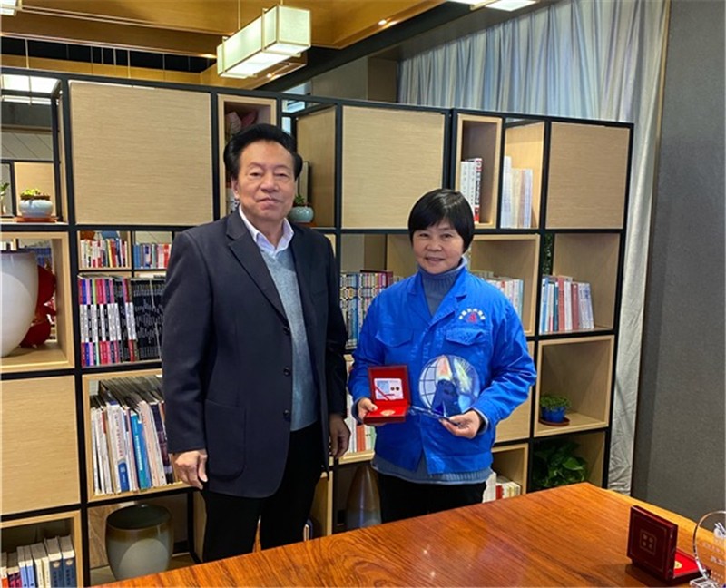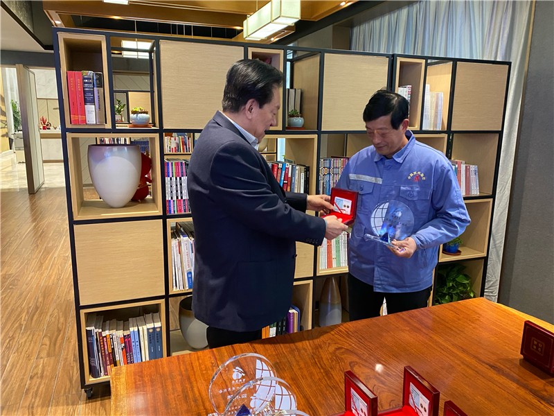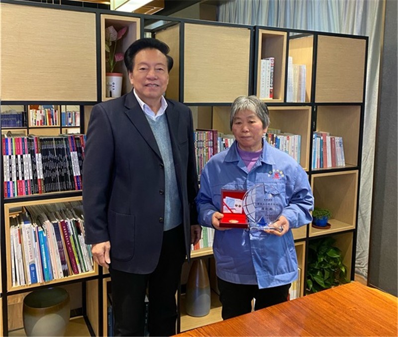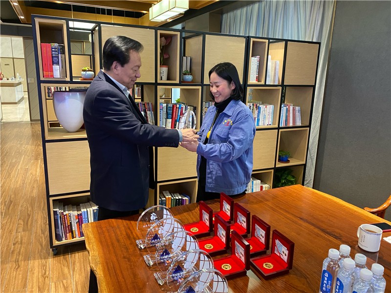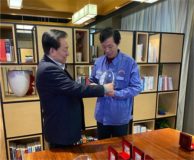 茶话会开始前,集团举行了规模虽小,但非常庄重的荣誉授牌仪式,集团创始人、董事长茹伯兴为老员工授牌。手捧由50克纯金制成的荣誉纪念牌,老员工脸上都挂满了欢喜与幸福。