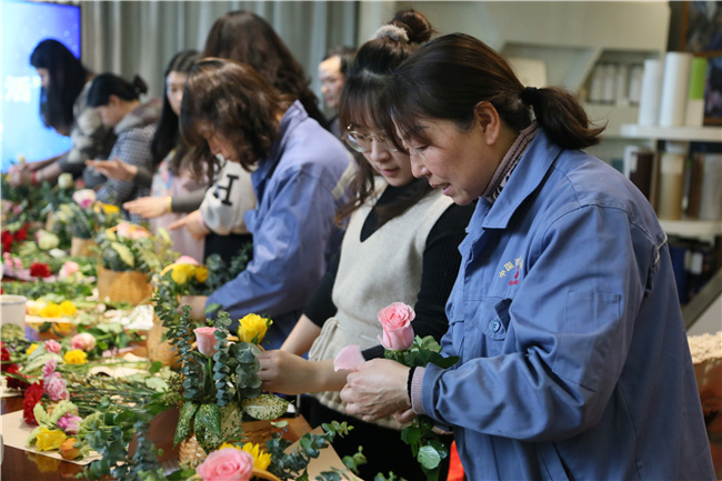 活动还邀请了花艺老师教授女职工花卉知识和插花技巧,女职工们认真聆听、细心琢磨,把学到的知识融入到作品中。在大家的巧手摆弄下 ,创造了一盆盆别出心裁的插花作品。
